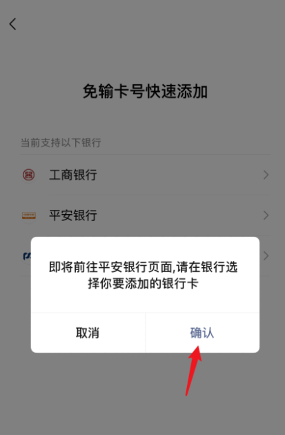 验证之后,弹出提示框,点击确认,然后点击需要绑定的银行卡,