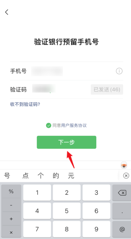 阅读用户协议,点击【同意】,验证银行预留手机号,获取验证码并输入,进行下一步,