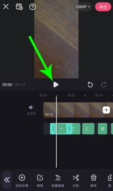 语音识别完毕,必剪就会自动在视频中添加字幕,然后点击播放按钮,