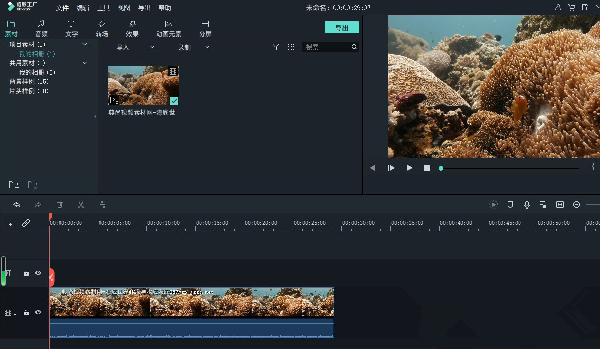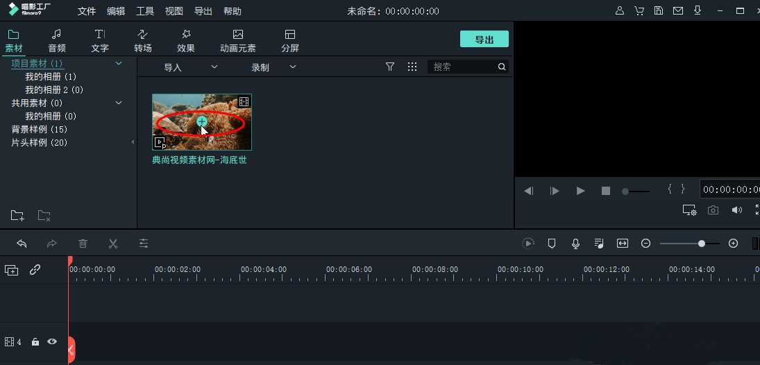 如图,点击视频文件中间的【+】,将该视频添加到视频轨道区域,