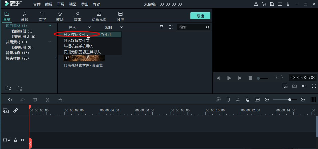 打开喵影工厂,进入软件界面,在菜单栏点击【导入】——【导入媒体文件】,从本地计算机选择并加载一个视频文件,