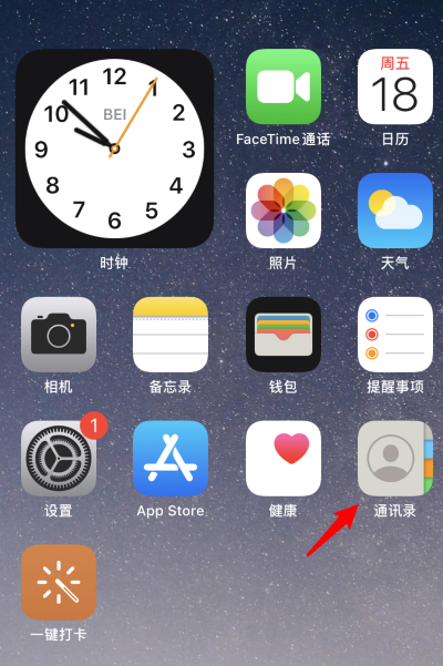 打开iPhone手机,进入桌面,点击通讯录应用,