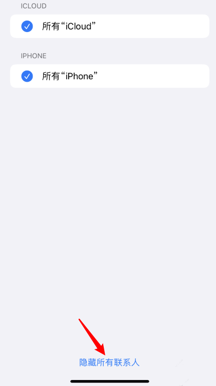 跳转至以下界面,点击下方的【隐藏所有联系人】选项,