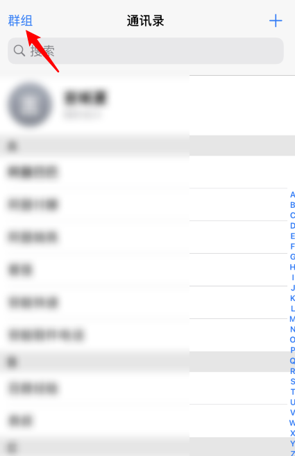 打开通讯录,如图,点击左上角的【群组】选项,