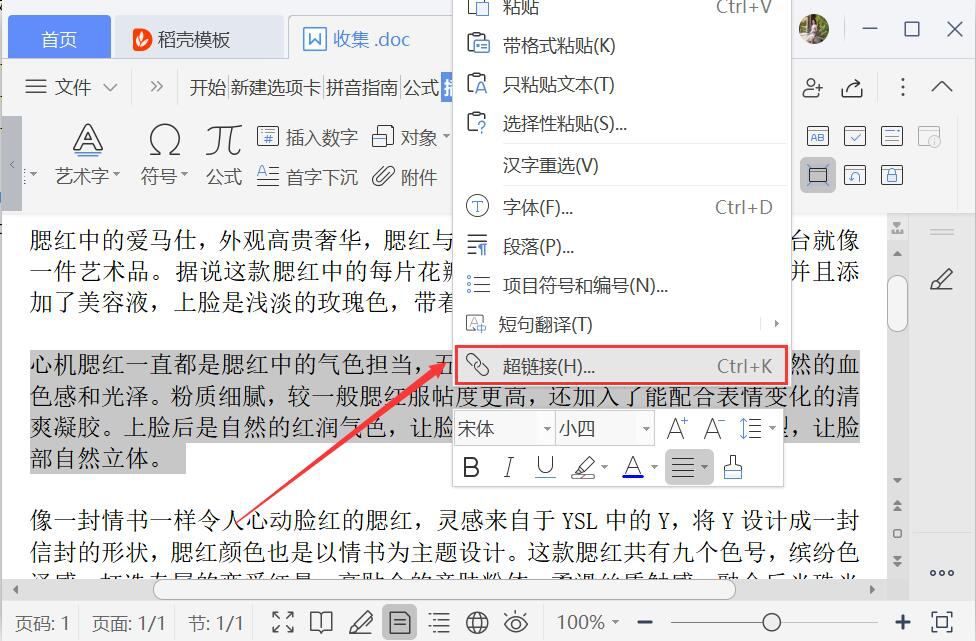 word文档如何插入超链接?