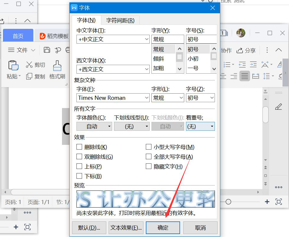 9、回到word字体设置窗口,可以预览word文字制作了酷炫效果后的模样,如果效果理想,就点击“确定”按钮。