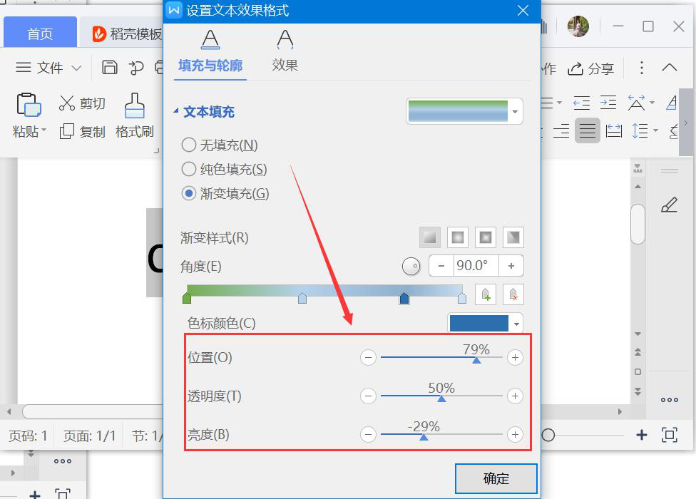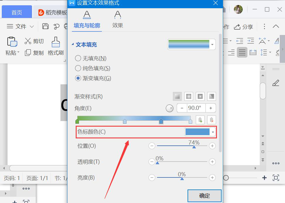 6、它默认的色标颜色是淡蓝色,我们可以根据自己想要实现的word文字酷炫效果来选择颜色,如下图所示,我选择了绿色和蓝色结合渐变。
