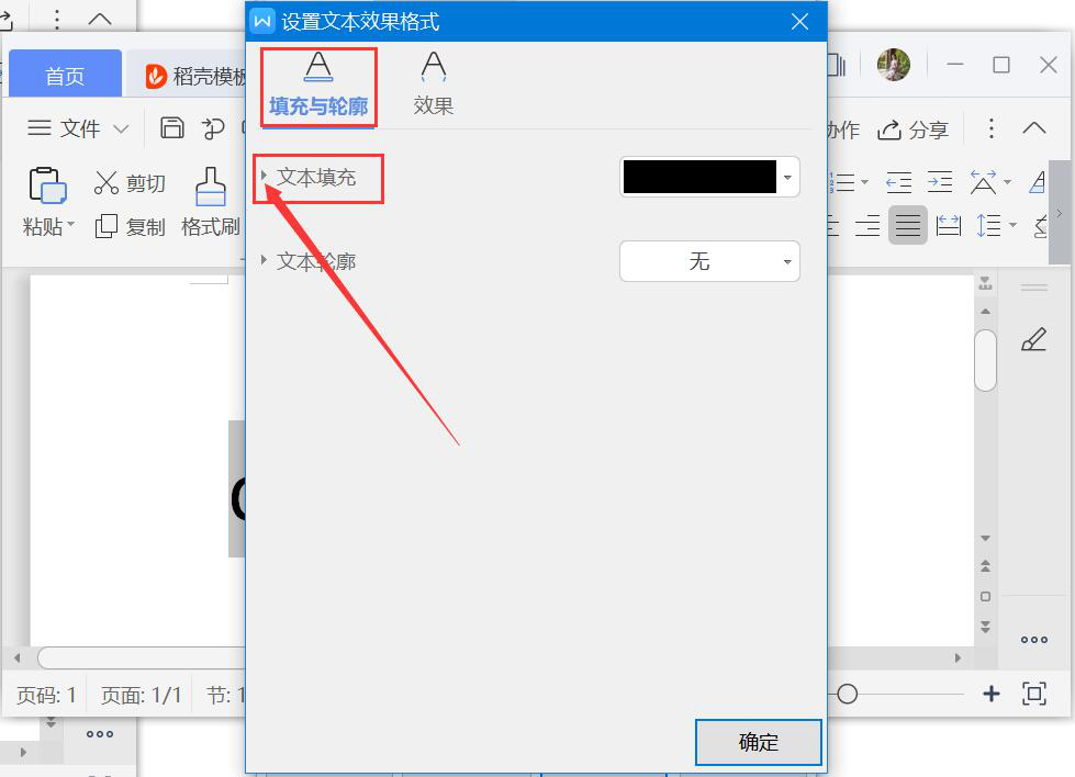 4、开始对文本效果格式进行设置。先切换至“填充与轮廓”选项卡,点击“文本填充”前的三角图标。