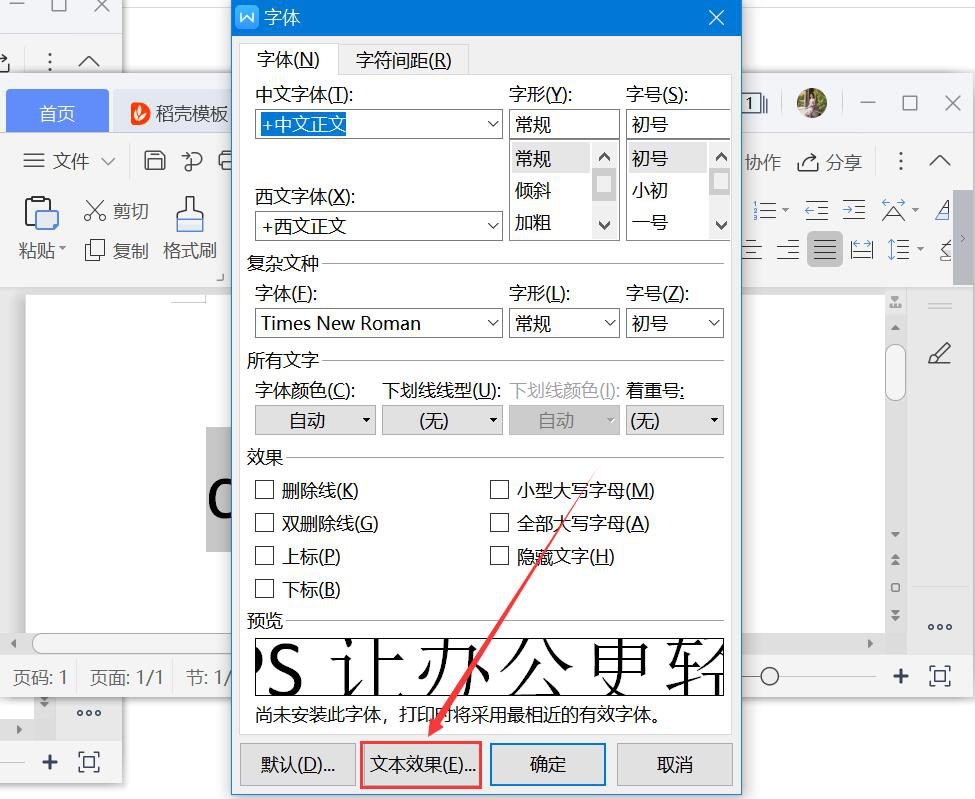 3、在word弹出的“字体”窗口中,直接点击“文字效果”按钮。