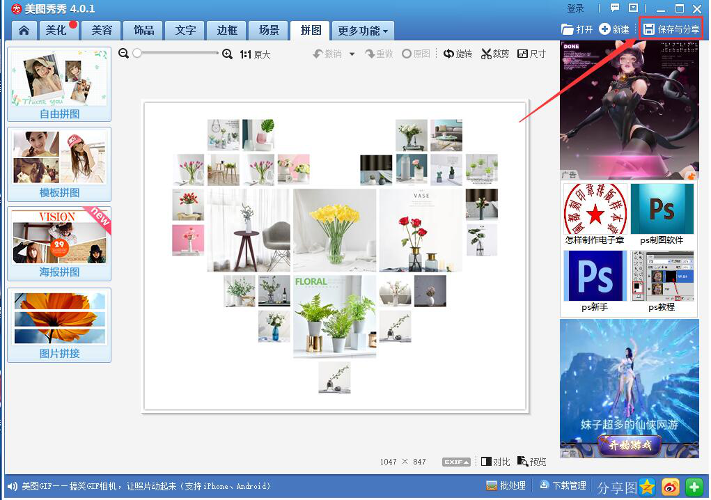 美图秀秀如何给图片做出心形拼图效果?