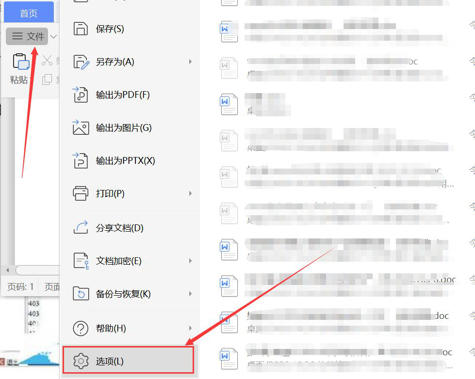 2、然后,点击“文件”菜单中的“选项”,从而进入选项设置。