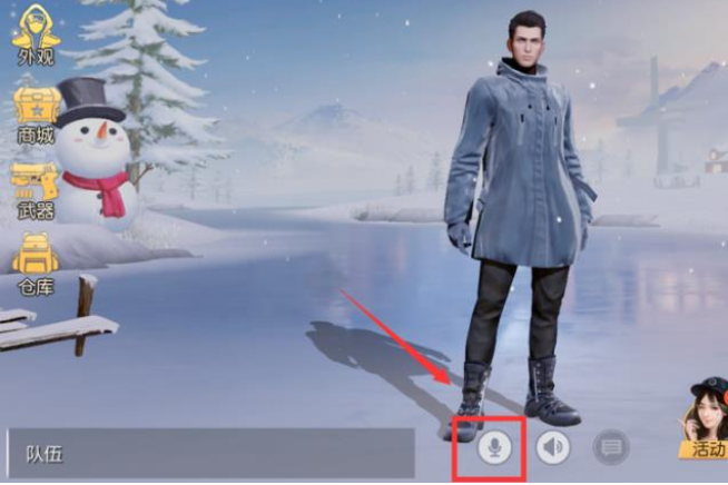 1、进入荒野行动游戏界面,将麦克风开关开启。