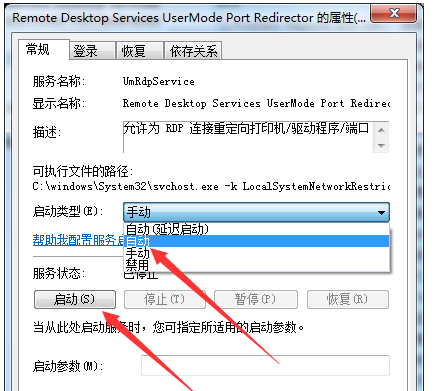 弹出属性窗口,如图,点击【启动类型】,设置为自动,然后点击服务状态下的【启动】按钮,开启该服务。