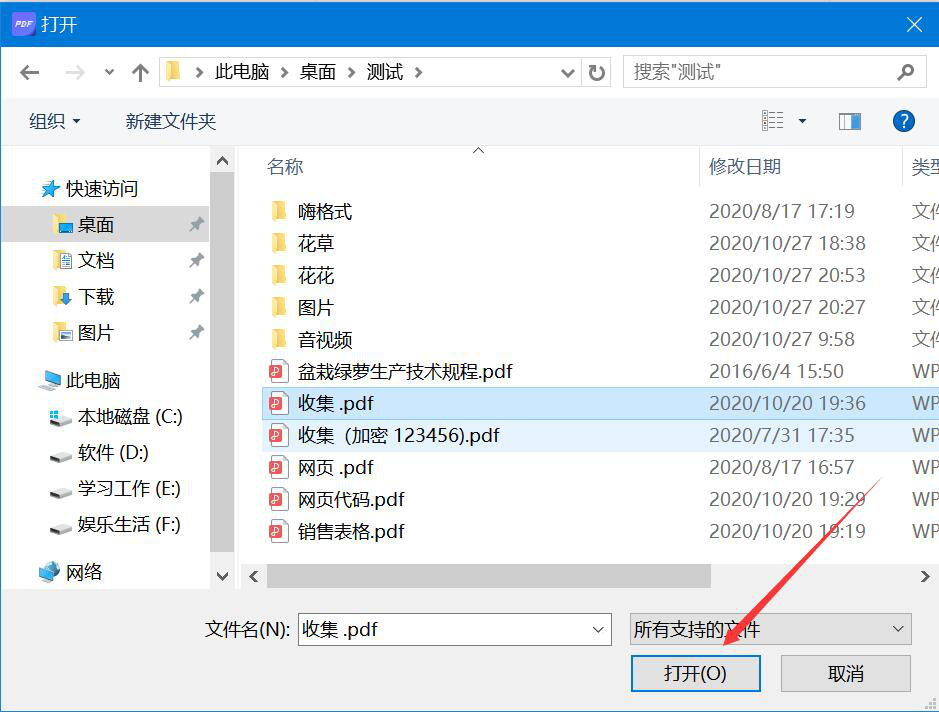 2、在弹出的窗口中,我们将需要转word的PDF文件选中,点击“打开”按钮,将其导入极光PDF阅读器。
