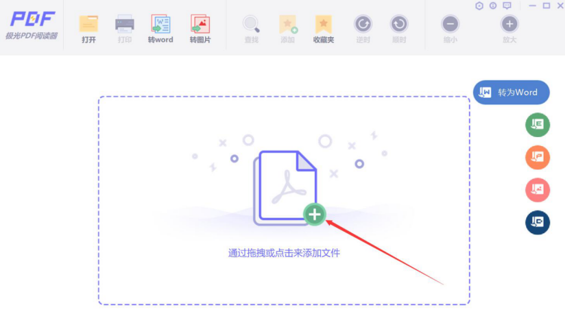 1、首先,我们进入极光PDF阅读器的操作界面,点击界面中部的“+”按钮。