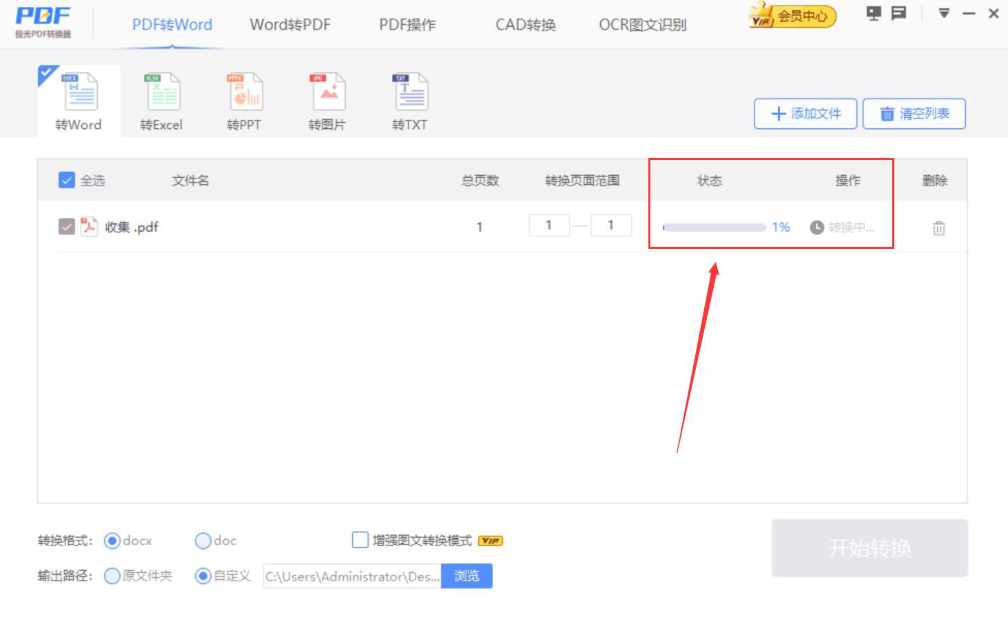 6、点击“开始转换”按钮,极光PDF阅读器便开始将PDF转word。