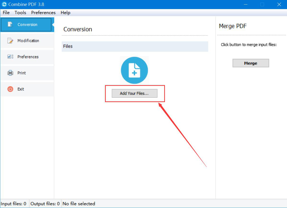 1、首先,我们进入Combine PDF操作界面,点击界面中部的“Add Your Files”按钮。