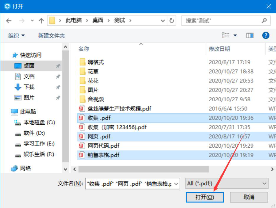 2、在弹出的窗口中,将需要合并的PDF文件分别选中,并点击“打开”按钮,将它们一并导入Combine PDF。