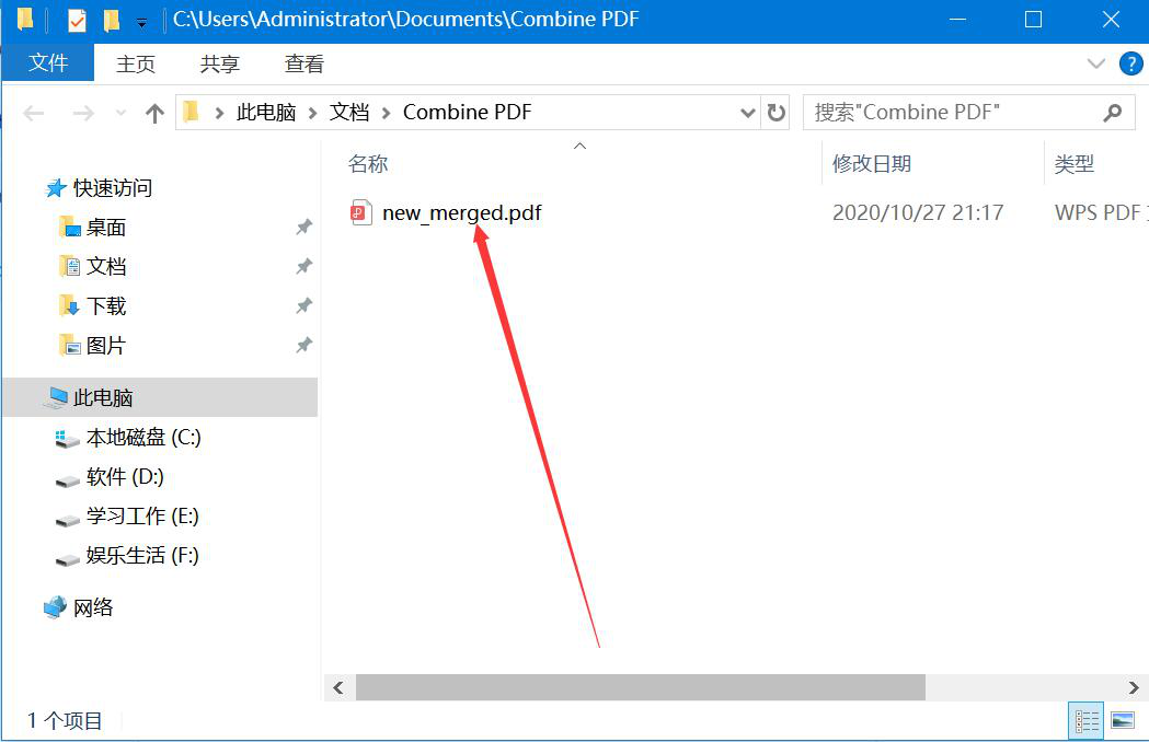 7、最后,我们便可以在Combine PDF的文件夹路径中找到合并后的PDF文件了。我们双击它便可以阅读文件了。