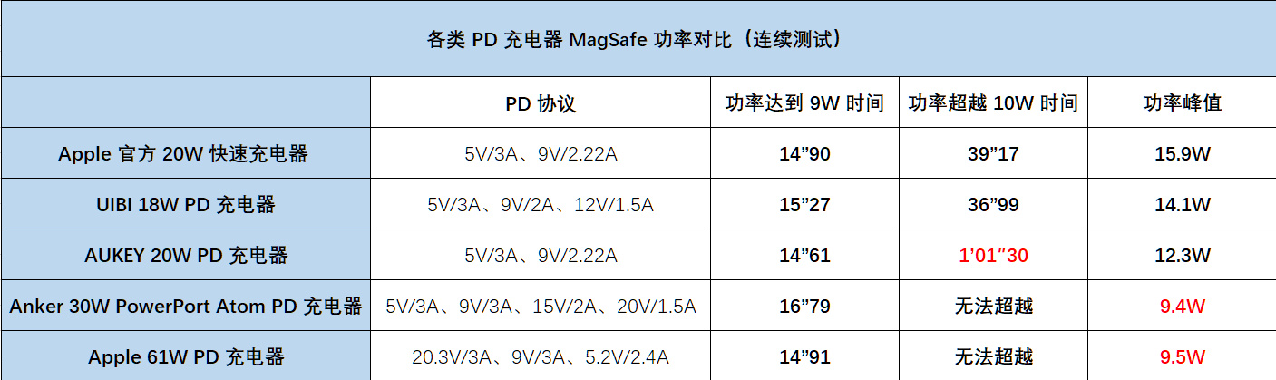 2、不同温度条件下,充电的速度往往不同,因此才得出“除官方 20W 之外,其它充电器都无法达到 MagSafe 峰值 15W 充电速度”的结论。