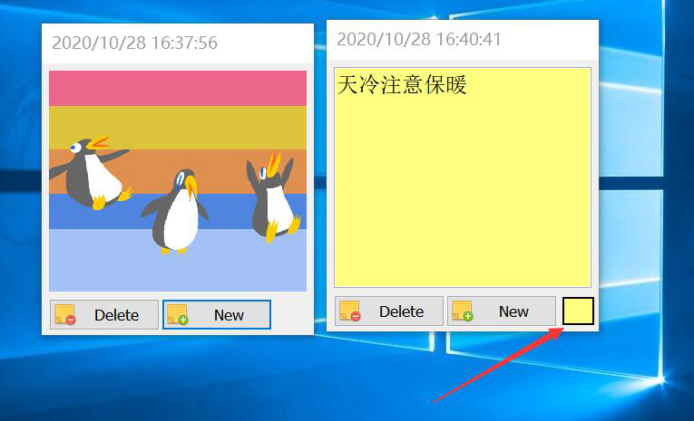 3、如果VovSoft Sticky Notes默认的桌面标签的背景颜色不是我们想要的话,就点击标签窗口右下方的正方形颜色按钮。