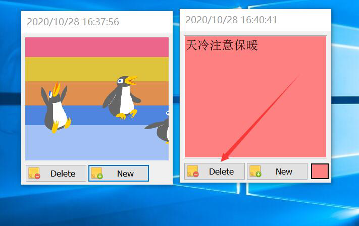 6、如果我们不需要VovSoft Sticky Notes创建的这个桌面标签,就点击“Delete”按钮。