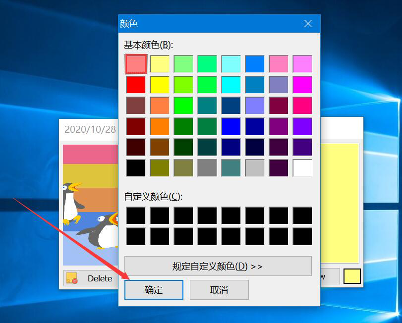 4、弹出颜色窗口,我们单击选择喜欢的颜色,并点击“确定”按钮。