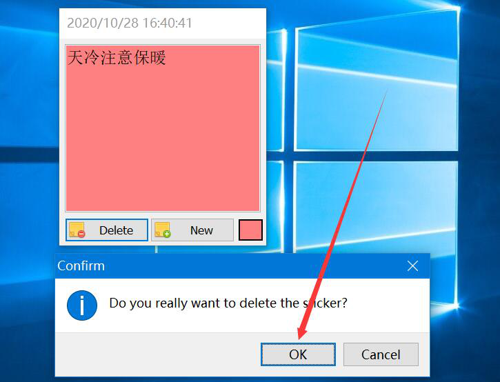 7、最后,在弹出的窗口中,点击“OK”按钮,即可将VovSoft Sticky Notes创建的这个桌面标签给删除掉。