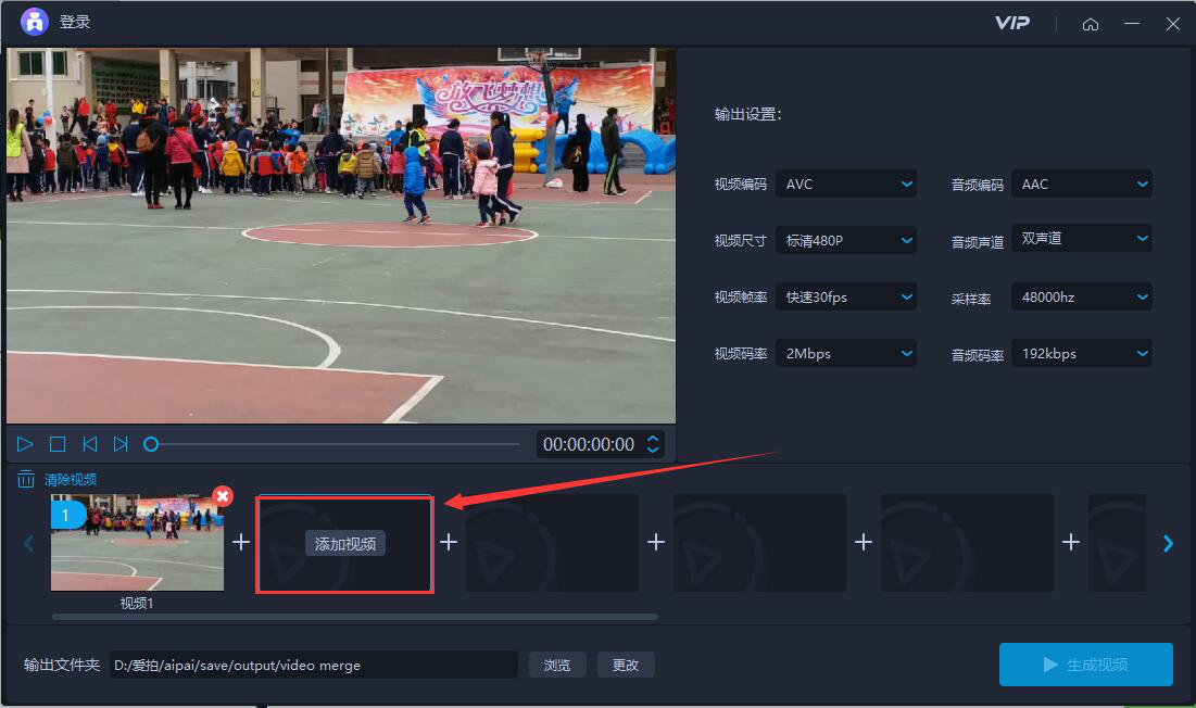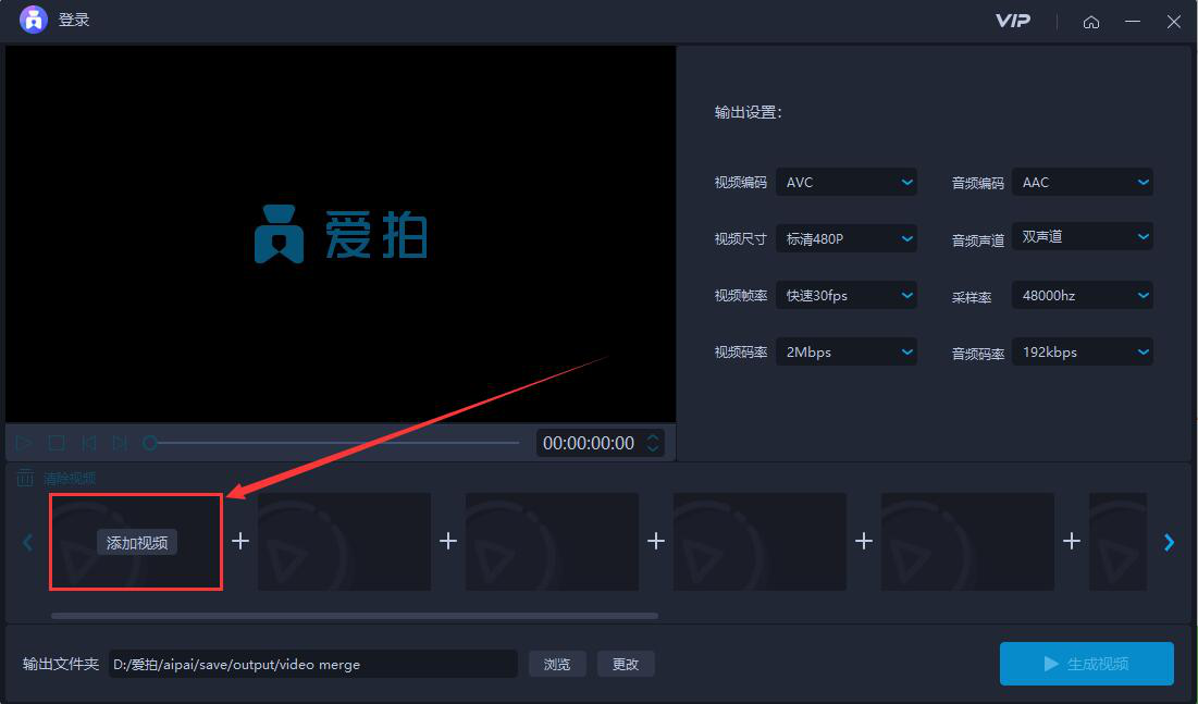 4、回到爱拍的视频合并操作界面,继续点击“添加视频”按钮。