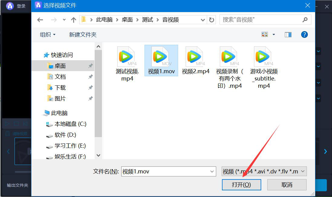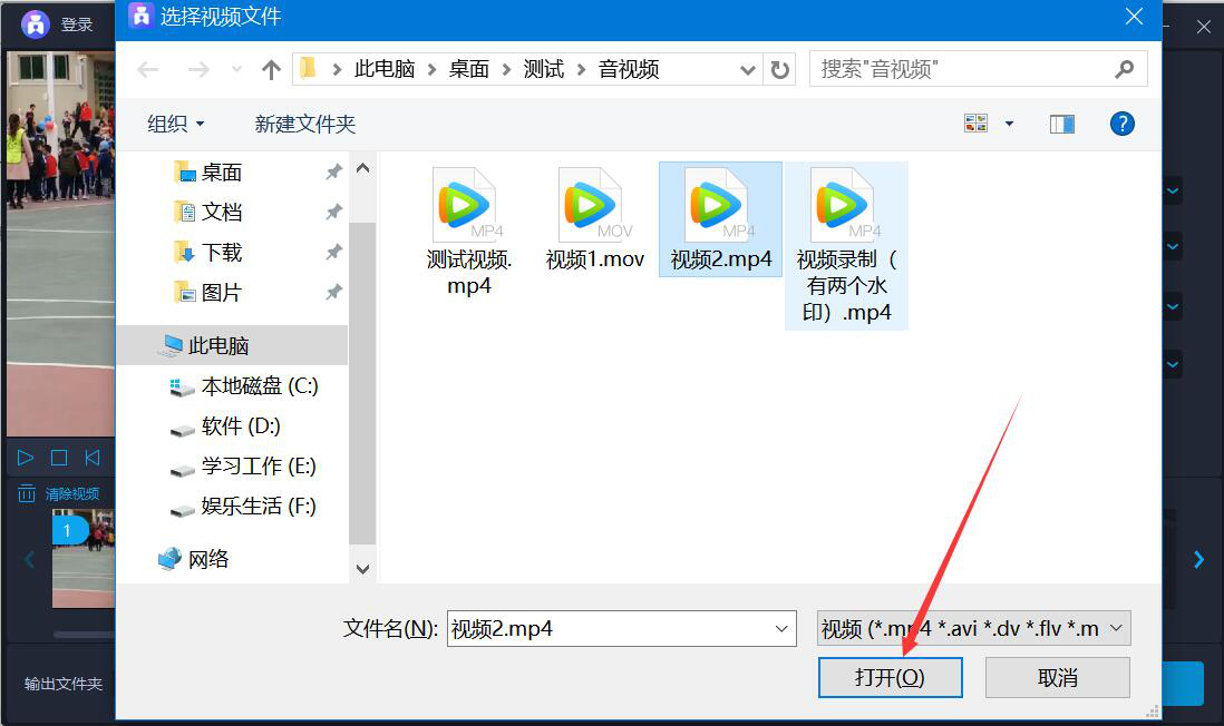 5、在弹窗中,将需要合并的第二个视频选中,点击“打开”按钮,将它也导入爱拍。