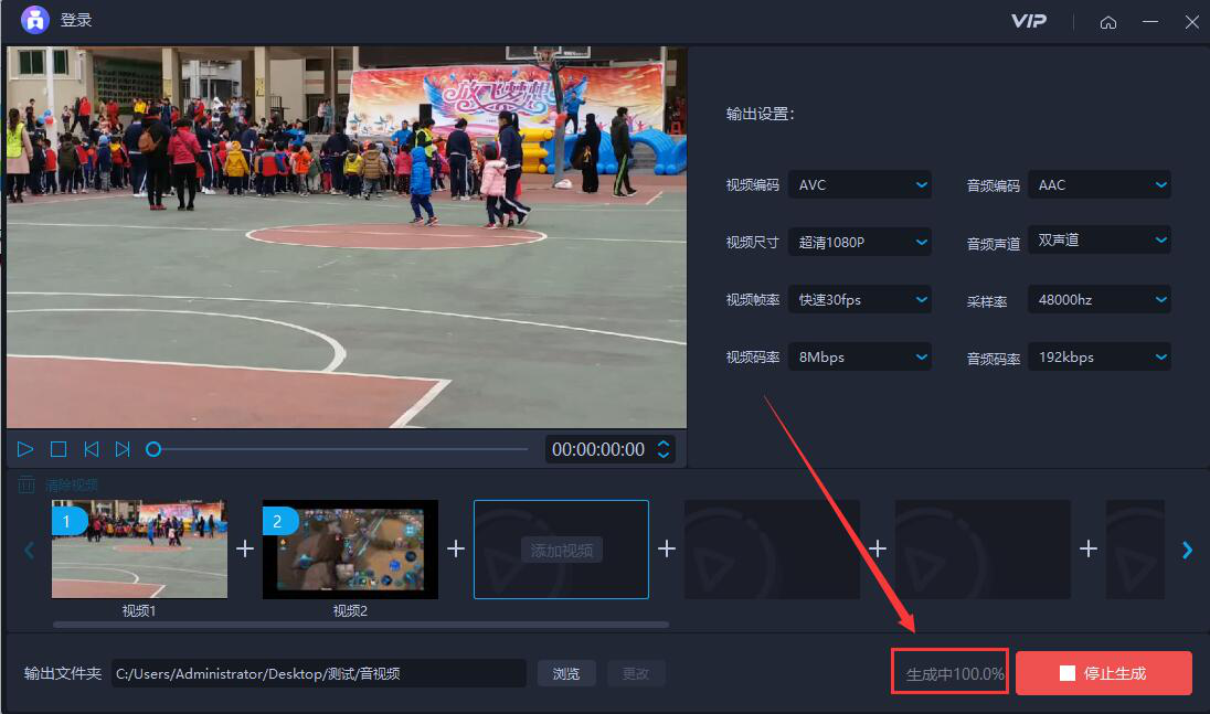 11、最后,当显示“生成中100%”的时候,说明爱拍完成了视频的合并。