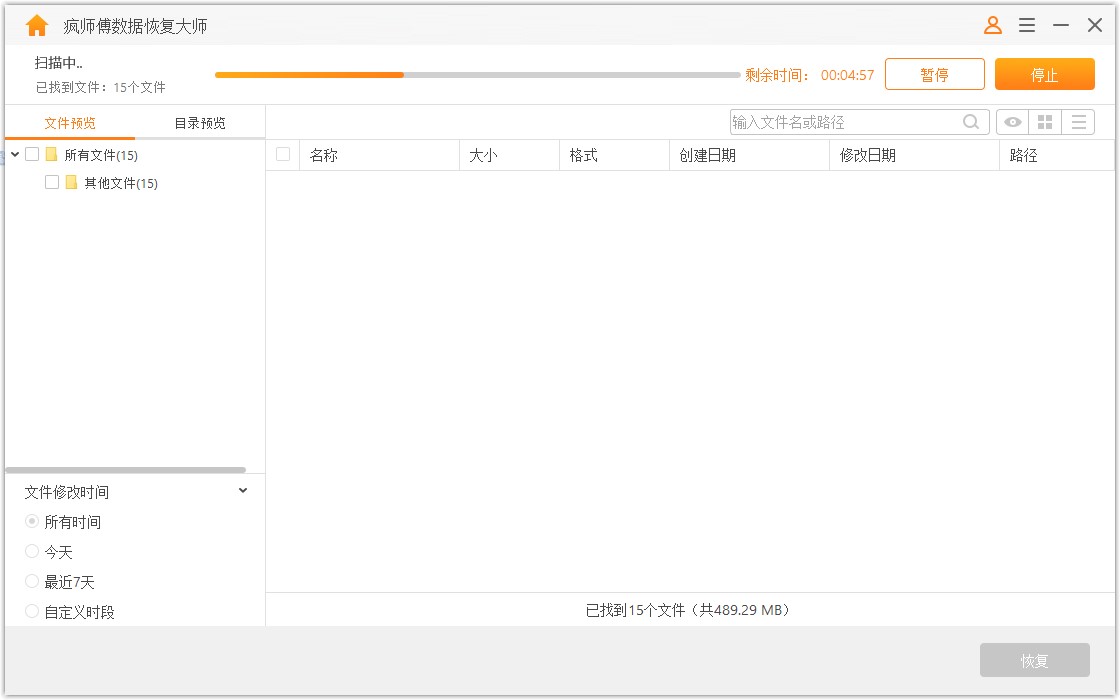此时软件正在扫描选中的分区,需要耐心等待,