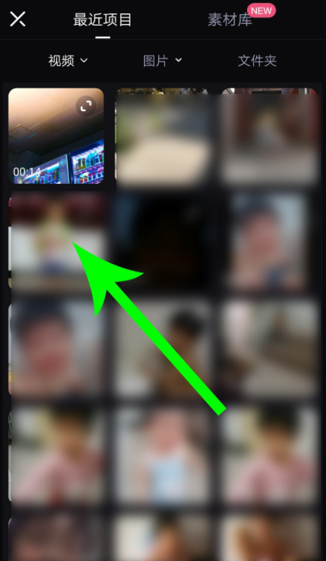 跳转至以下界面,点击【最近项目】,选择视频素材,