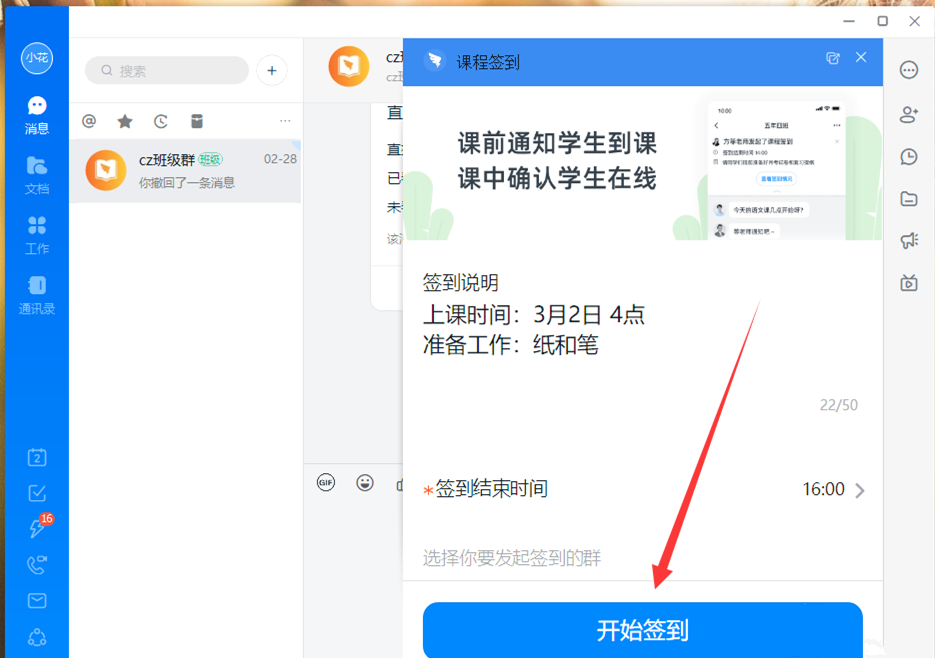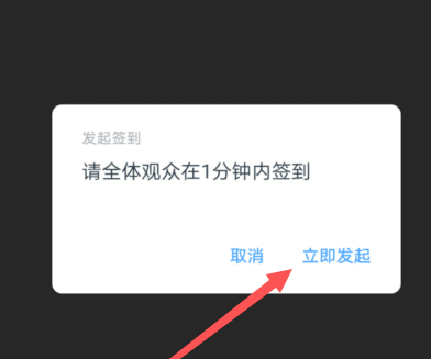 弹出窗口,点击【发起签到】,出现提示框,点击【立即发起】,