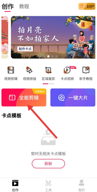 在手机中打开爱剪辑APP,进入创作界面,点击【全能剪辑】,