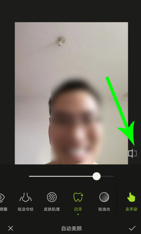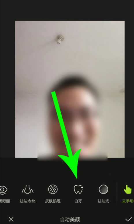 打开美颜功能,向右滑动,然后点击【白牙】,
