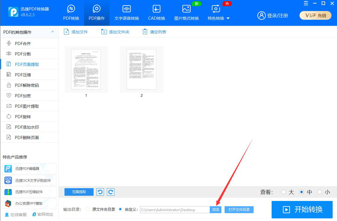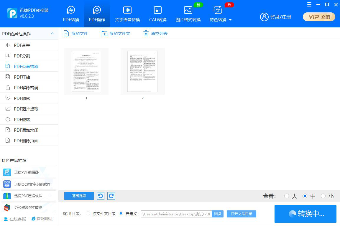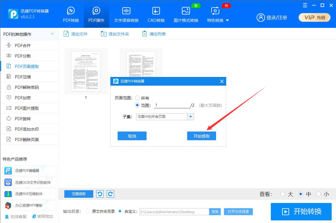想要快速提取PDF中特定的某个页面、所有页面、奇数页、偶数页,都可以使用迅捷PDF转换器来提取。