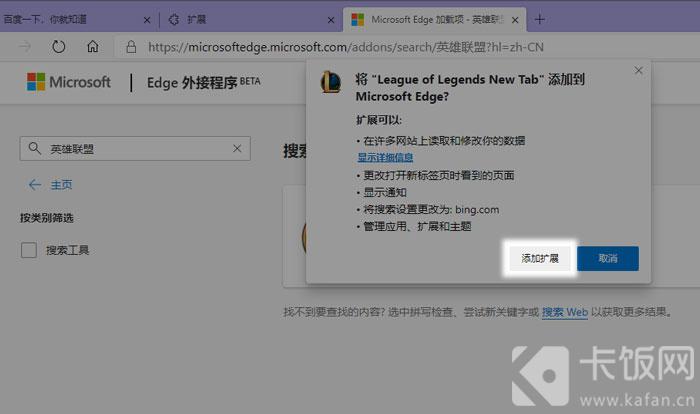 5、然后最上方将会弹出一个提示窗口,点击【添加扩展】;