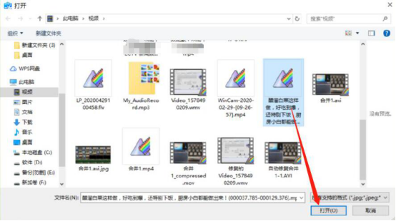 3.在弹出的窗口中,将需要添加马赛克的视频选中,点击“打开”按钮,将它导入迅捷视频剪辑器。