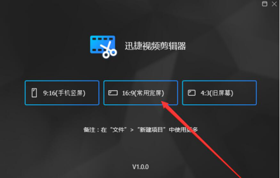 1.首先,我们打开迅捷视频剪辑器。在向导界面中,我们点击应用适合自己视频的比例。