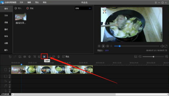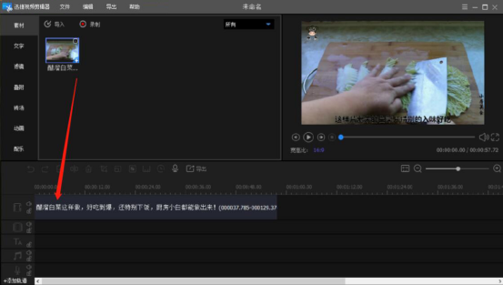 4.接下来,我们单击选中刚才导入的视频,并按住鼠标左键将它拖放至视频编辑轨道,如下图。
