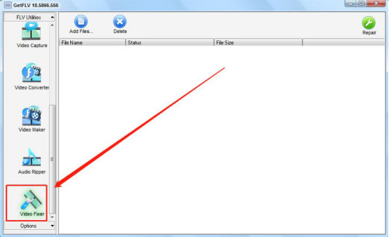 1.首先,我们打开GetFLV。在它的界面左侧,找到并点击flv视频修复功能“Video Fixer”。