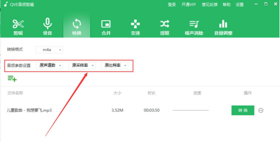 4.接下来,我们根据自己的需要来设置MP3转M4A的音频参数。