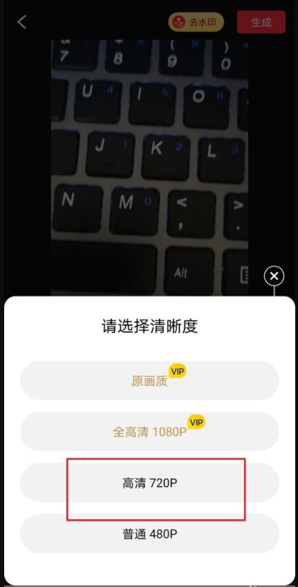 弹出菜单选项,选择视频清晰度,软件即可自动合并视频,你只需要耐心等待。