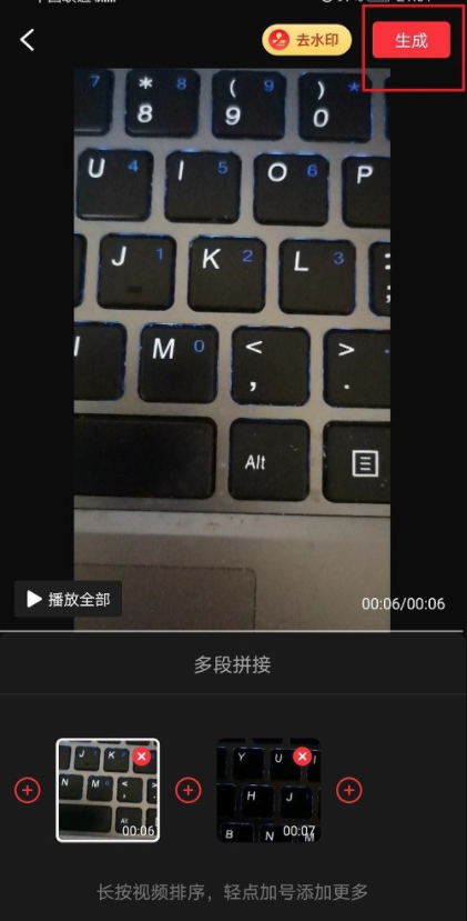 视频导入成功,进入视频剪辑窗口,点击右上方的【生成】,