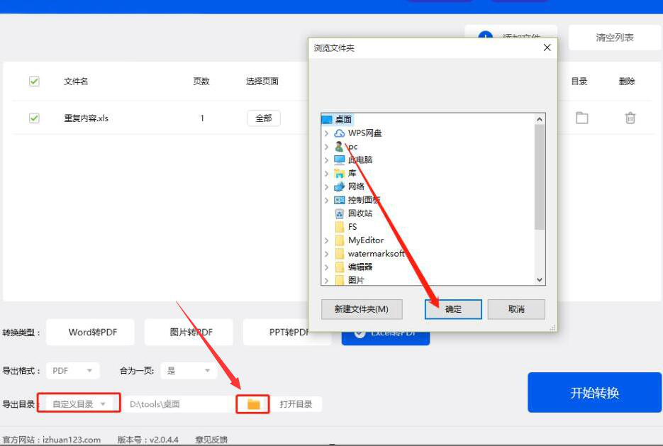 5、如果Excel转PDF的导出目录需要更改,就选择自定义目录,并点击如下图的“文件夹”图标按钮。