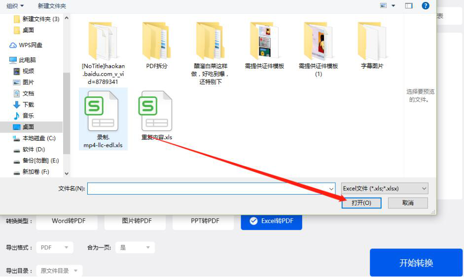 3、此时,爱转换PDF转换器便会弹出选择文件窗口,我们将需要转PDF的Excel工作表选中,再点击“打开”按钮。