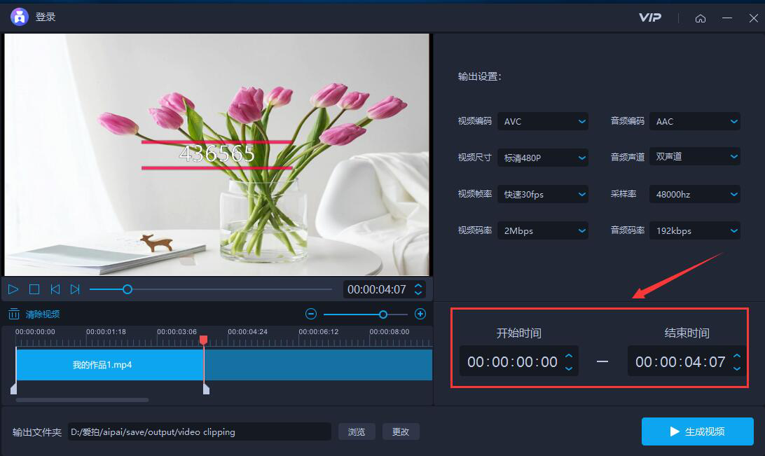 8、视频剪切的参数都设置好了后,我们点击界面右下方的“生成视频”按钮。
