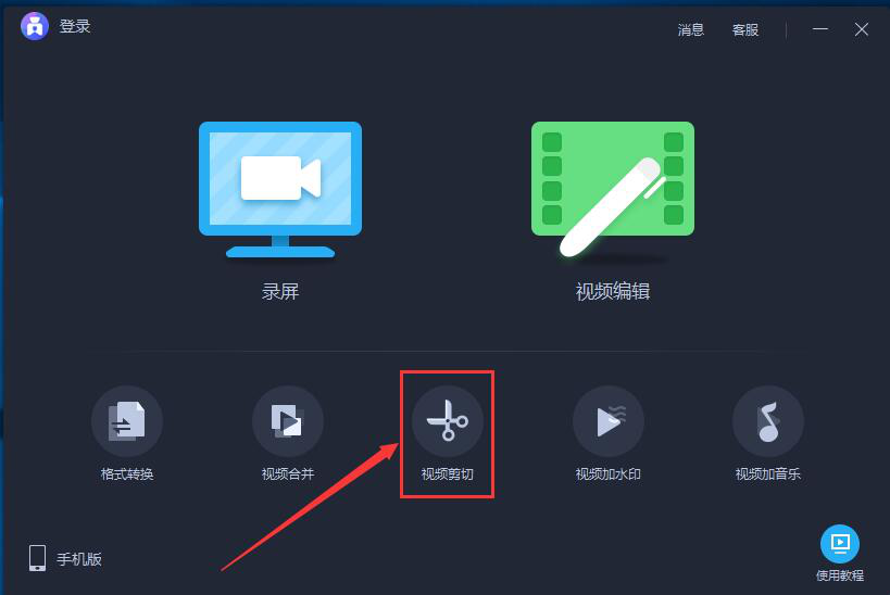 1、首先,我们打开爱拍,从其向导页面中点击“视频剪切”按钮。