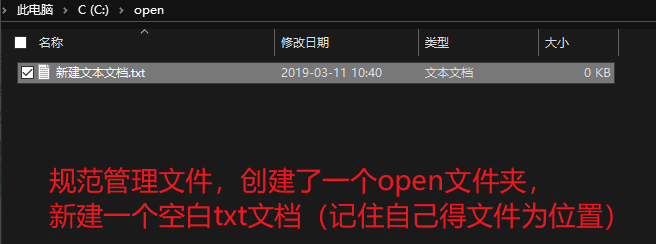 在C盘根目录创建一个文件夹,打开之后,新建一个TXT记事本,